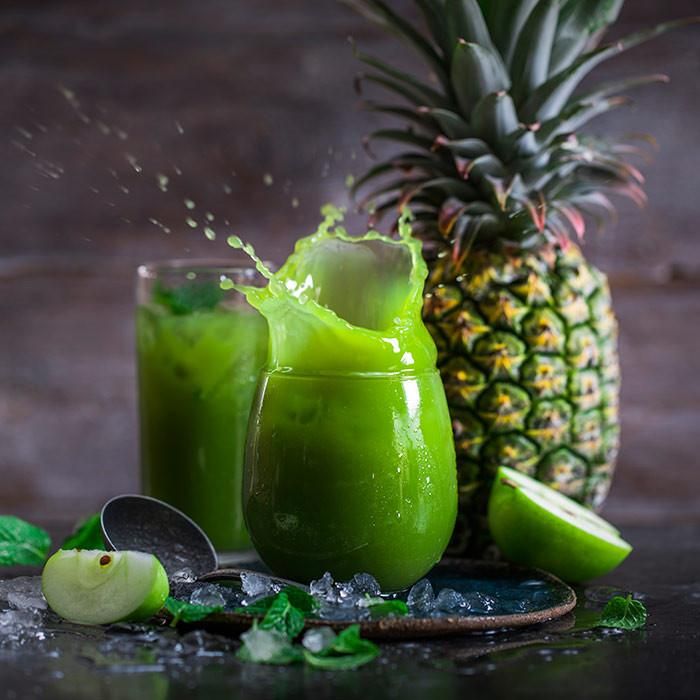 - Ingredients: Pineapple, Apple, Mint Tea, Kale, Spinach, Parsley, Romaine